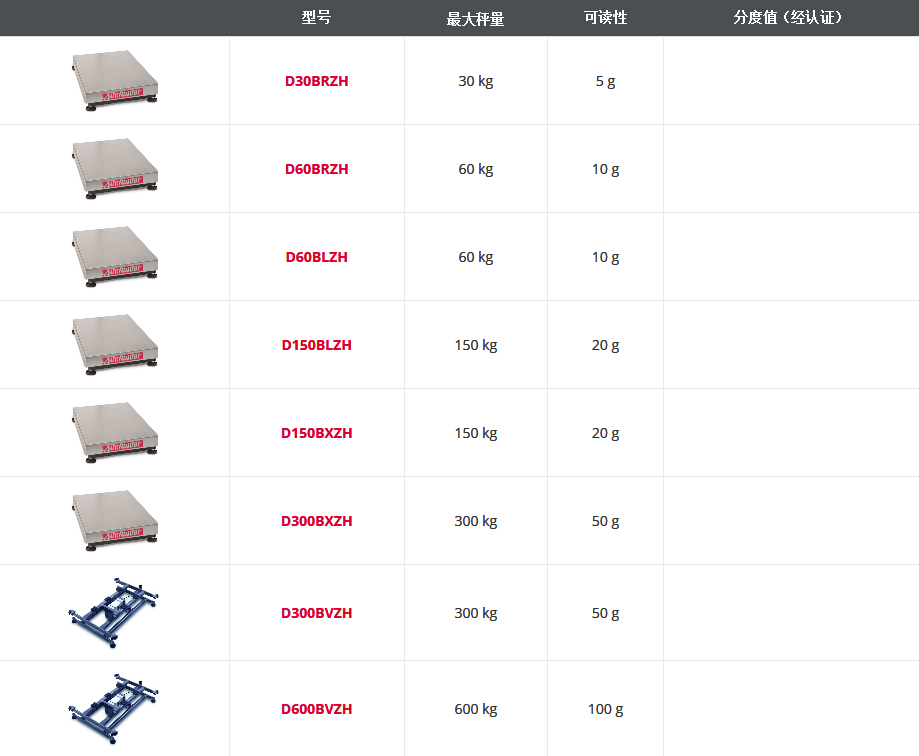 Defender® 3000 臺秤秤體型號參數(shù):