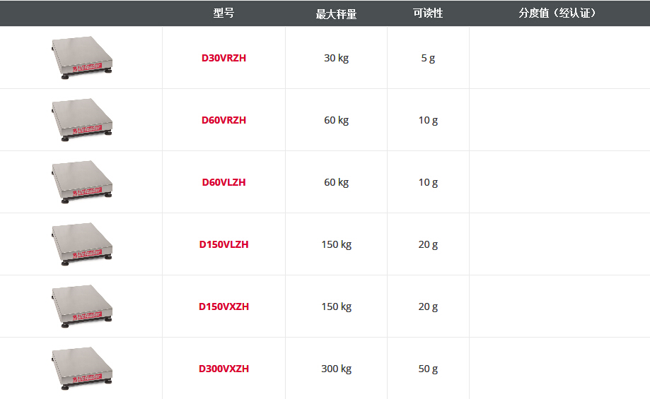 Defender® 3000 不銹鋼臺秤秤體型號參數(shù):