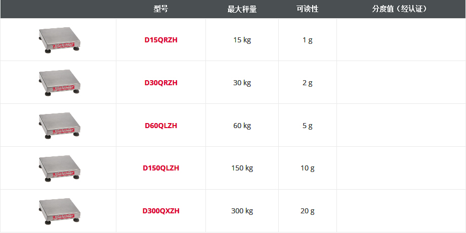 Defender® 5000 Q臺秤秤體型號參數(shù):