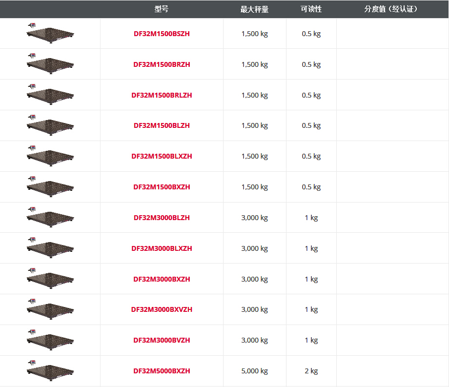 Defender® 3000 電子平臺(tái)秤型號(hào)參數(shù):